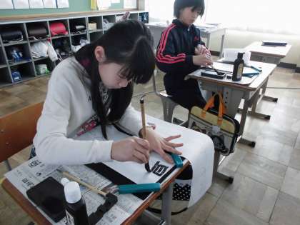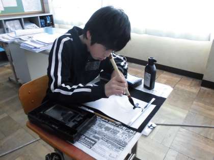 新年の目標を考え,その目標を半紙に習字で書きました。