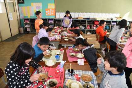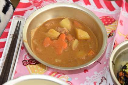 チキンカレーに,幸せニンジンが入っていました。飛行機の形をしていました。いつもよりたくさん入っていました。いつもどんな形でもうれしい幸せニンジンです。