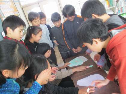 今回は,イベント係から「新年お楽しみ会」が提案されました。イベント係からは「福笑い」,バースディ係からは「おみくじ」,お笑い係からは「お笑いコント」などがありました。準備が短い時間でしたが,みんなで協力してとても楽しい会になりました。明日は,遊び係からのみんな遊びが計画されています。