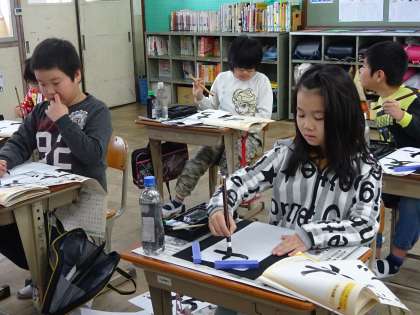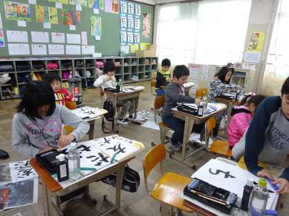 今日の書写では,「友だち」という字に挑戦しました。初めての3文字の言葉で,バランスをとるのが難しかったですが,じっくり取り組みました。来週は清書をします。教室の後ろに掲示されるのが楽しみです。