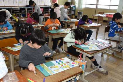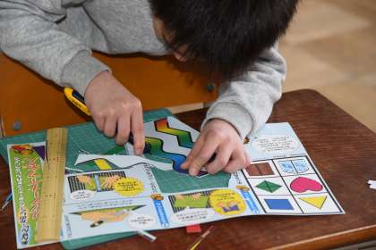 カッターナイフで紙を切る練習(2年生)