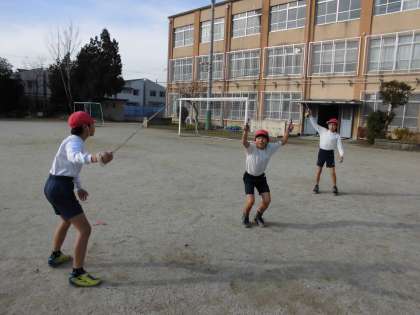 今日は,長なわと短なわを組み合わせた跳び方にも挑戦しました!