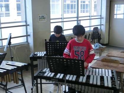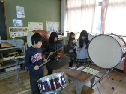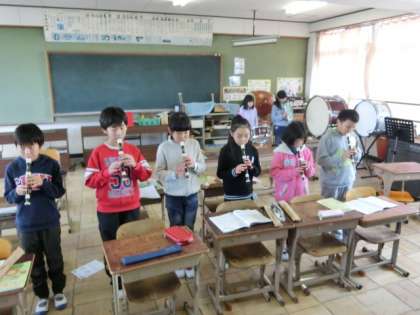 冬休み前からいろいろなパートを練習してきた「茶色の小びん」の合奏をしました。演奏するパートを一回ずつ変えて,全体の音のバランスを聞きながら演奏を楽しみました。