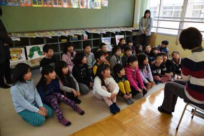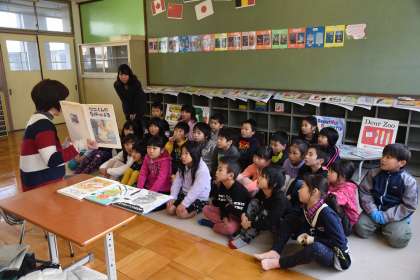 地域の山口さんに,読み聞かせをしてもらいました。「ワニくんのながーいよる」「ワニくんのめざましどけい」「こぶたブルトン」の3冊を読んでもらいました。どれもおもしろい話ばかりでした。