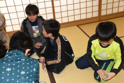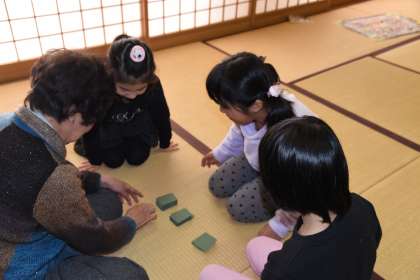 昔の遊びをしました。百人一首で遊びました。誰もが経験している,坊主めくりをして遊びました。一枚の札をめくる毎に,ドキドキしながらめくっていました。最後まで分からないゲーム展開を楽しんでいました。