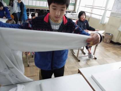 布のしわが,すっと伸びていく様子はとても気持ちよく,