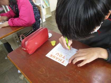 今週から「給食感謝週間」です。6年間お世話になった調理員さんに向けて感謝のメッセージと,自分たちの好きな給食を書きました。全員心のこもっている作品ばかりでした。