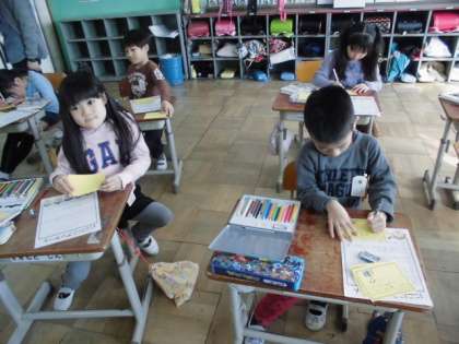 月曜日と火曜日で調査をした身近な人のニコニコをカードに書きました。