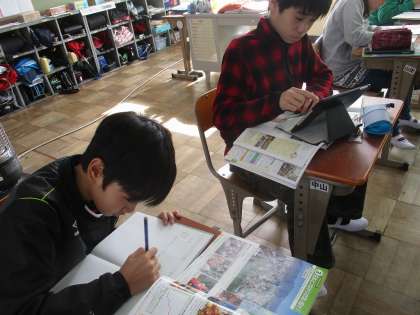 社会で新単元に入りました。アメリカ合衆国,中国,大韓民国,サウジアラビアについて,学校の様子や文化,食べ物など,日本と比べながら,タブレットを使って調べています。単元の最後には,自分の行きたい国を1つ決め,ポスターにします。