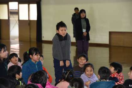 4年生が,二の北タイムで,山の家での活動を発表してくれました。雪の中での活動や向島二の丸小学校の4年生との交流の様子を聞きました。発表が終わってから,「早く行きたい」という感想を2年生が発表してくれました。