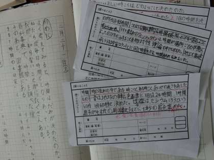 自分の調べたことを報告書に書きまとめる学習をしています。図書館で借りてきた本から,必要な情報を「情報カード」に書きだし,組み立てを考えて報告書の形にまとめます。必要な部分だけを書き出したり,自分の言葉で言い換えたりしてまとめています。