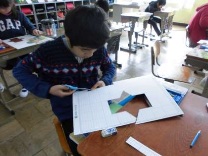 今日の算数の学習では,三角柱の展開図をかいて