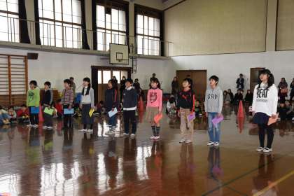 5年生は,「手紙」をテーマに6年生に言葉と歌を送りました。