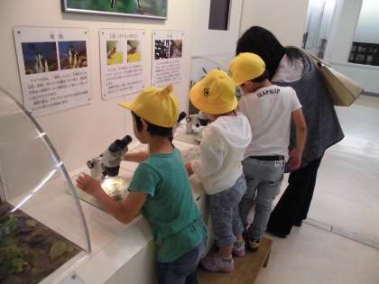 後半は1年生と高学年に分かれて活動しました。1年生は,科学の展示物をとても興味を