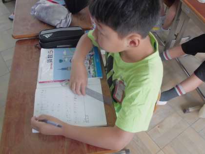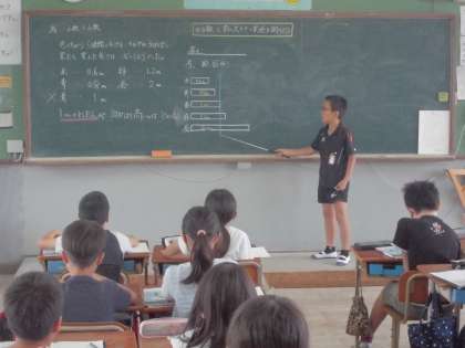 算数の学習では,小数÷小数の学習をしています。文章題を解いたり,筆算を使いながら,難しい計算問題に取り組んだりしています。「となりの人と一緒に考えるとわかった!」や「友達の発表を聞いて新しい考え方が見つかった!」など,たくさんの発見もありました。みんなで考えるっていいですね!