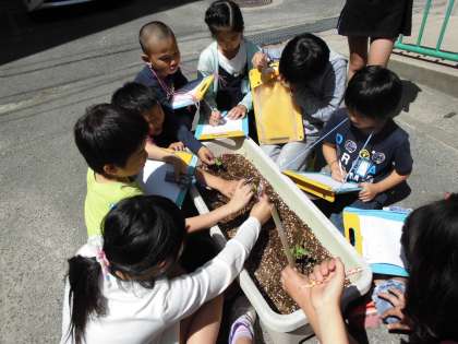 定規を使って,何センチメートルかな?と調べながら観察しています。