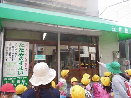 畳屋さんの前に来ると,大きな機械を見ることができました。