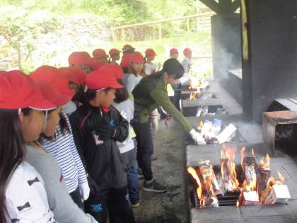 ホットドックのようにした後、アルミで包んで後は牛乳パックに入れて燃やします。程よく焼けるでしょうか?