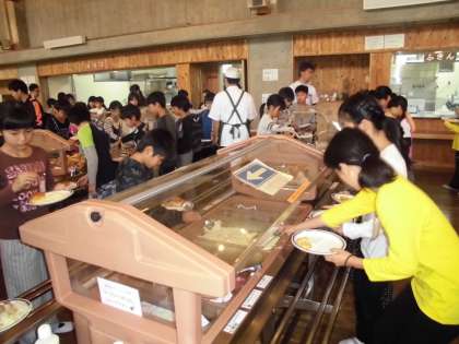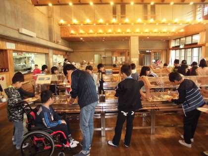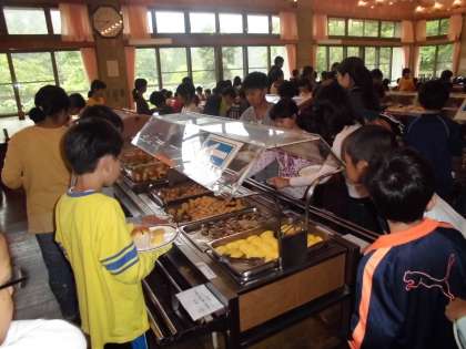 山の家での朝食はバイキング形式です。自分の好きなものをとることができます。