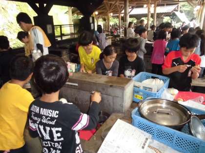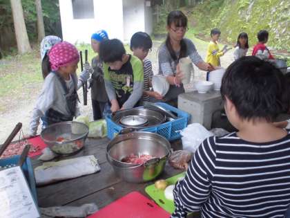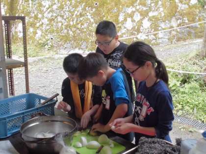 2回目の野外炊事は、バイキング形式で、班ごとに1つのメニューを作ります。