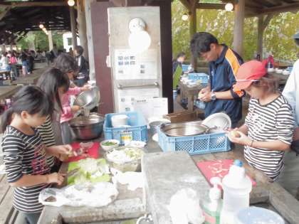 作るものは、ハヤシライス、クリームシチュー、焼きそば、豚汁です。
