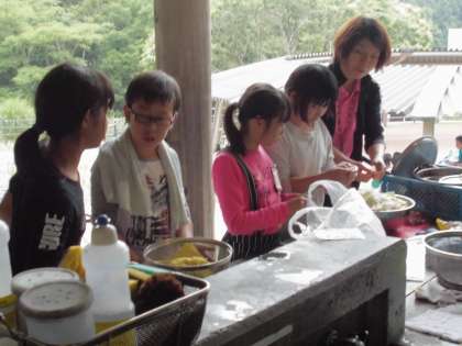 まずは野菜や肉を切ります。昨日の経験が活きているのか、段取りよくしています。