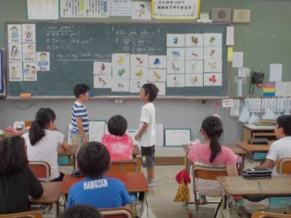 4年生になってスタートした外国語活動の時間。最初は戸惑っている人が多かったですが毎週のEnglish Dayや外国語活動の学習のおかげで楽しくみんなで協力し合って学習にトライしています。