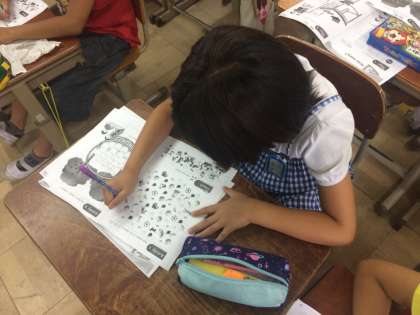 その後,「How many〜?」を使って,数を答える練習をしました。