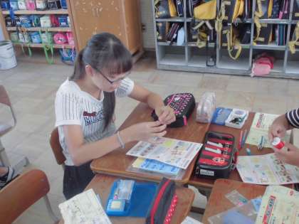 5年生は家庭科の学習で裁縫に取り組んでいます。裁縫セットの中の用具を確認してから,針と糸を使って,玉結び,玉どめをしました。はじめはなかなか上手にできませんでしたが,何度も練習し,少しずつできるようになってきました。これからの学習も頑張って欲しいと思います。