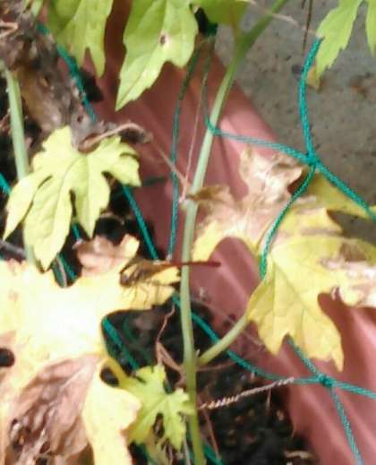 先生たちはもちろんのこと,みんなが育てているツルレイシも・・ツルレイシのところにやって来たナツアカネも(少し見にくいですが)・・4年生のことを応援していますよ。