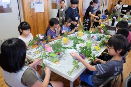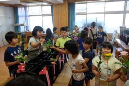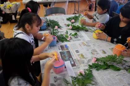 今日は,花育活動でフラワーアレンジメントに取り組みました。