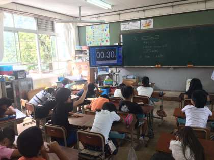 最後は,30秒だと思ったら,手を挙げるゲームをしました。ぴったりの時間に手を挙げられて,喜んでいました!