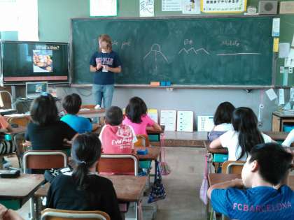 今年から英語の授業が始まった4年生ですが,目の前にするALTの先生や本物の英語にびっくりしている様子でした。