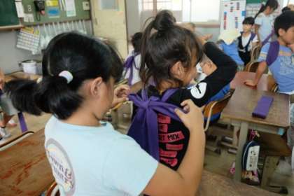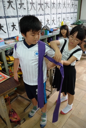 たすきを通すところや蝶々結びに苦戦しましたが,なんとかできました。