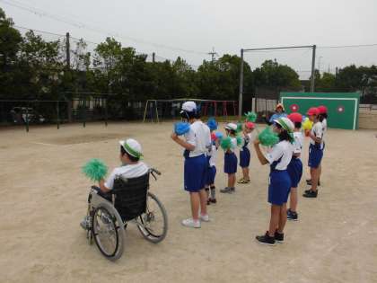 セリフはほぼ完ぺきに覚えており,応援の流れも練習の最後には把握して動けるようになってきました。また,お昼はたてわり活動があり,他学年の子どもたちと楽しく交流していました。