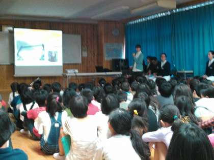 今日,4年生は学校歯科医の橋本歯科医さんによる食育指導を受けました。
