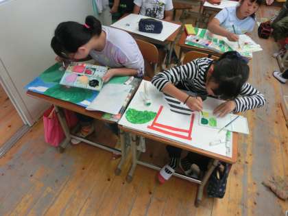 聞いたお話の内容から自分でイメージを広げていった絵が完成に近づいています。