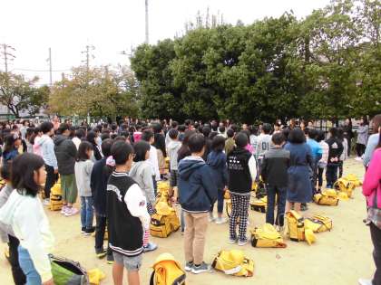 朝から元気いっぱいで登校した4年生124名が,運動場で出発式を行いました。
