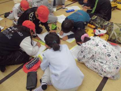 1日の終わりには、振り返りをします。まずは全体で、次にグループで交流します。