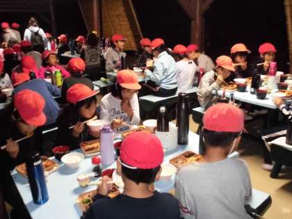 夕食は子どもの好きな唐揚げやエビフライ、お味噌汁もありました。