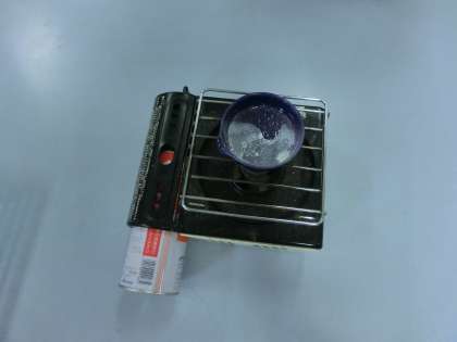 アルミニウムの姿が見えなくなった塩酸を蒸発皿に移して熱してみると・・・。