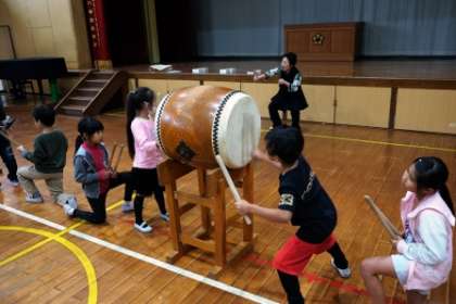 実際に太鼓でもたたきました。とても楽しんで取り組めていました。