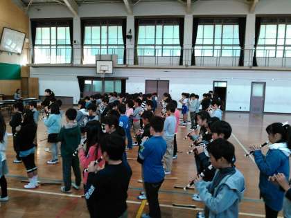 昨日,楽器を体育館に運び入れ,本番さながらの練習が始まりました。