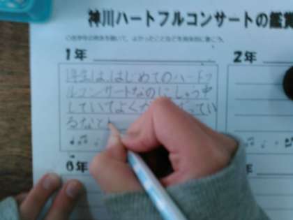ハートフル・コンサートが終って,5時間目に4年生はふりかえり感想文を書きました。