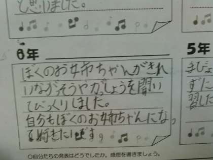 目・耳・心で味わった各学年やPTAコーラスの発表,自分の頑張り等を感想文にまとめました。
