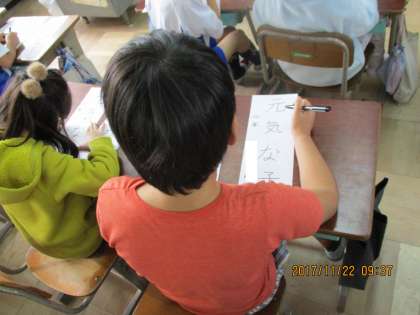 書写の学習では,「元気な子」とフェルトペンで書きました。