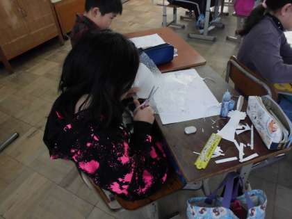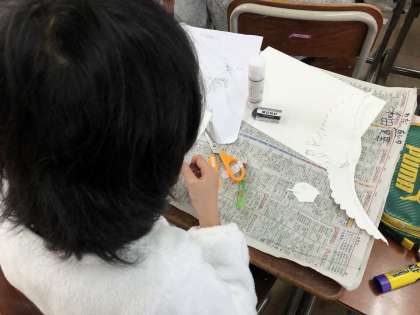 図工では,版画の続きをしています。