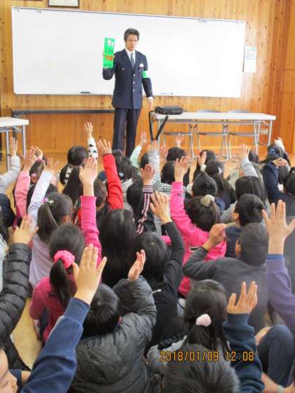1月9日(火)の学活では,おまわりさんや女性会の方からお話を聞きました。