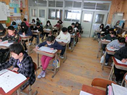 今までの学習の成果を発揮するために,集中してテストに取り組んでいました。