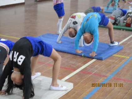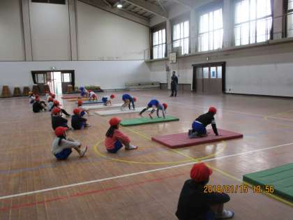 ゆらゆら「ゆりかご」や「かえるジャンプ」などをした後,